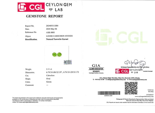 Tsavorite Matching Pair - 2.11 cttw - Oval