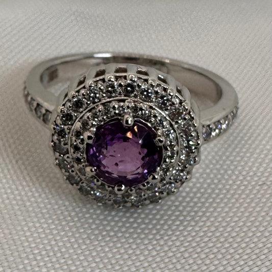 Natural Purple Sapphire & Diamond Halo Ring – White Gold