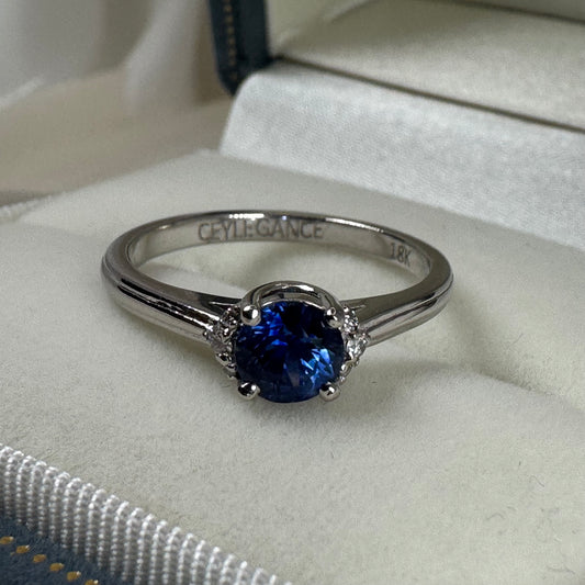 18K White Gold Ceylon Blue Sapphire & Diamond Ring