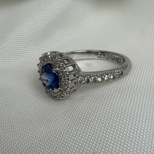 Natural Blue Sapphire Ring with Diamond Halo – 18K White Gold