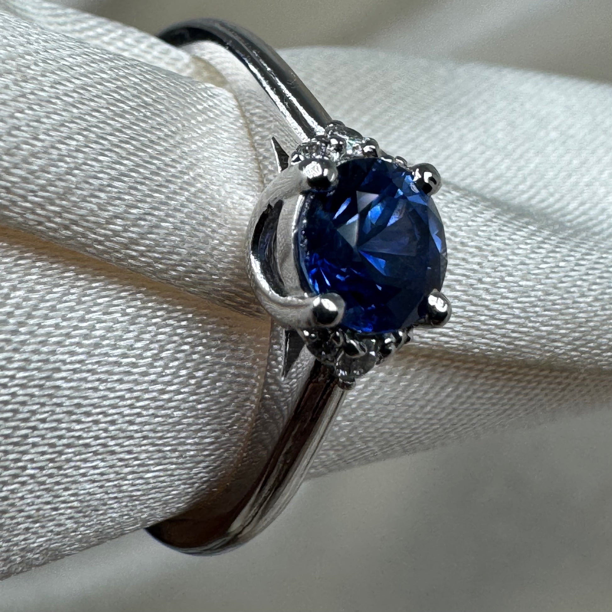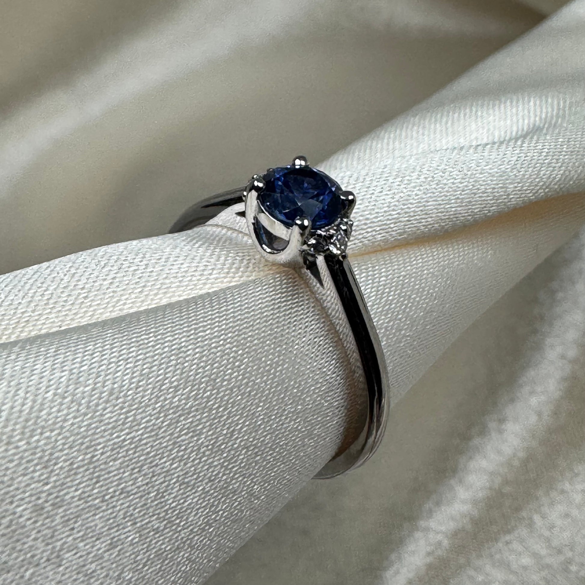 18K White Gold Ceylon Blue Sapphire & Diamond Ring