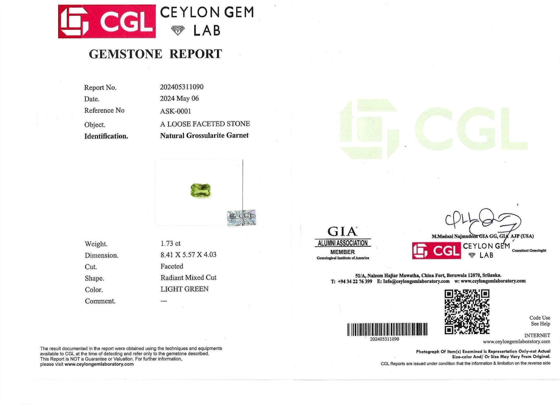 Tsavorite - 1.73ct - Radiant Mixed Cut